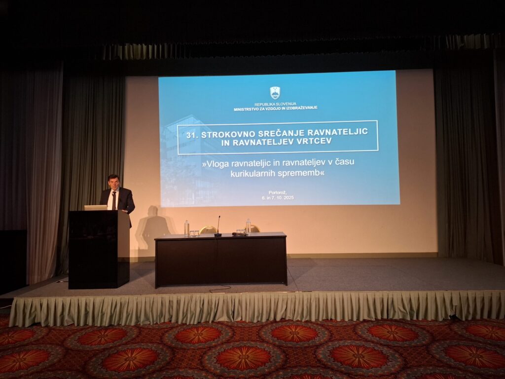 V ponedeljek, 6. oktobra, ter v torek, 7. oktobra 2025, je v kongresnem centru Grand Hotel Bernardin v Portorožu potekalo XXXI. strokovno srečanje ravnateljic in ravnateljev vrtcev. Na strokovnem srečanju so udeleženci skupaj z ravnatelji in strokovnjaki s področja kurikularnega razvoja razmišljali o ključnih usmeritvah prenove, vlogi vodstva pri uvajanju sprememb ter možnostih za krepitev strokovne avtonomije, sodelovalnega učenja in vključevanja otrok ter mladih v soustvarjanje sodobnega vzgojno-izobraževalnega okolja.