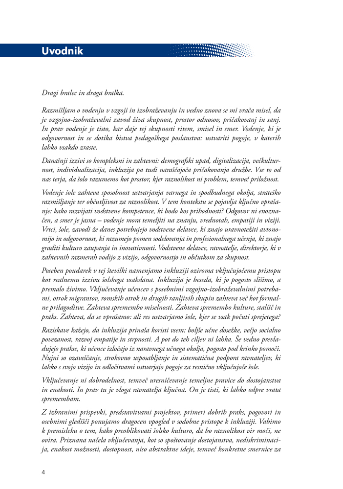 Poseben poudarek v tej številki namenjamo inkluziji oziroma vključujočemu pristopu kot realnemu izzivu šolskega vsakdana. Inkluzija je beseda, ki jo pogosto slišimo, a premalo živimo. Vključevanje učencev s posebnimi vzgojno-izobraževalnimi potrebami, otrok migrantov, romskih otrok in drugih ranljivih skupin zahteva več kot formalne prilagoditve.
