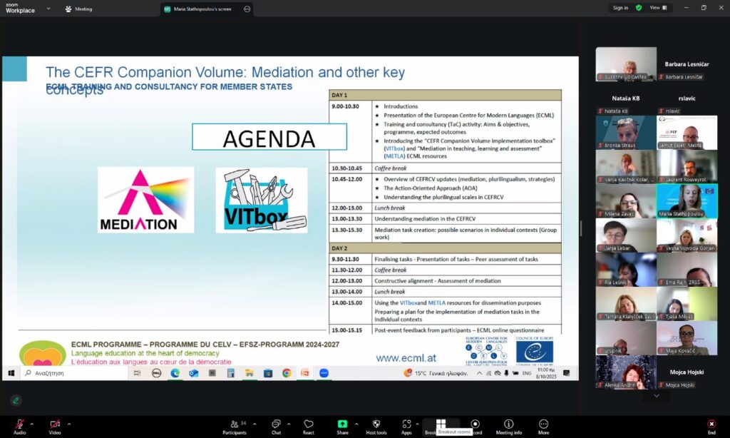 Področna skupina za jezike je v sodelovanju s Centrom za moderne jezike iz Gradca (ECMJ) 8. in 9. oktobra 2025 organizirala dvodnevno delavnico, namenjeno članom Predmetno kurikularnih komisij za jezike.